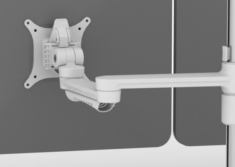Designed for ease of operation, an environmental focus and a minimalist design, the C.ME Monitor Arm from Thinking Works is very easy to assemble and install. C.ME is available in single, dual, triple, or quad arm monitor supports in two colour options – silver/ white or black/black. Primary and add-on arms only are also available as is a lap top stand.